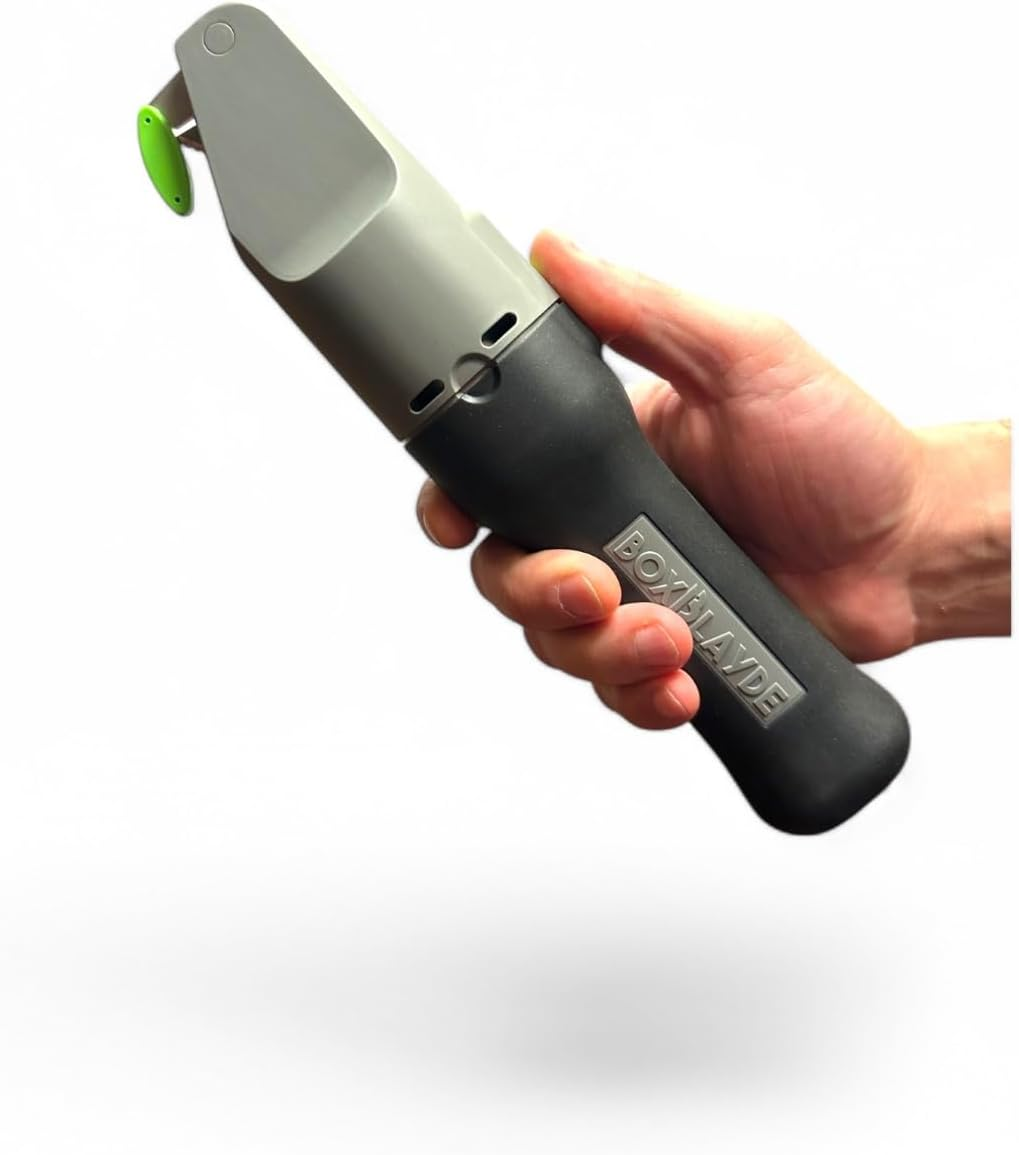 Make quick work of boxes and packaging with the BoxBlayde Premium Electric Cardboard Cutter. This heavy-duty power tool is ideal for home, office, and warehouse use. Effortless, safe, and efficient cutting.